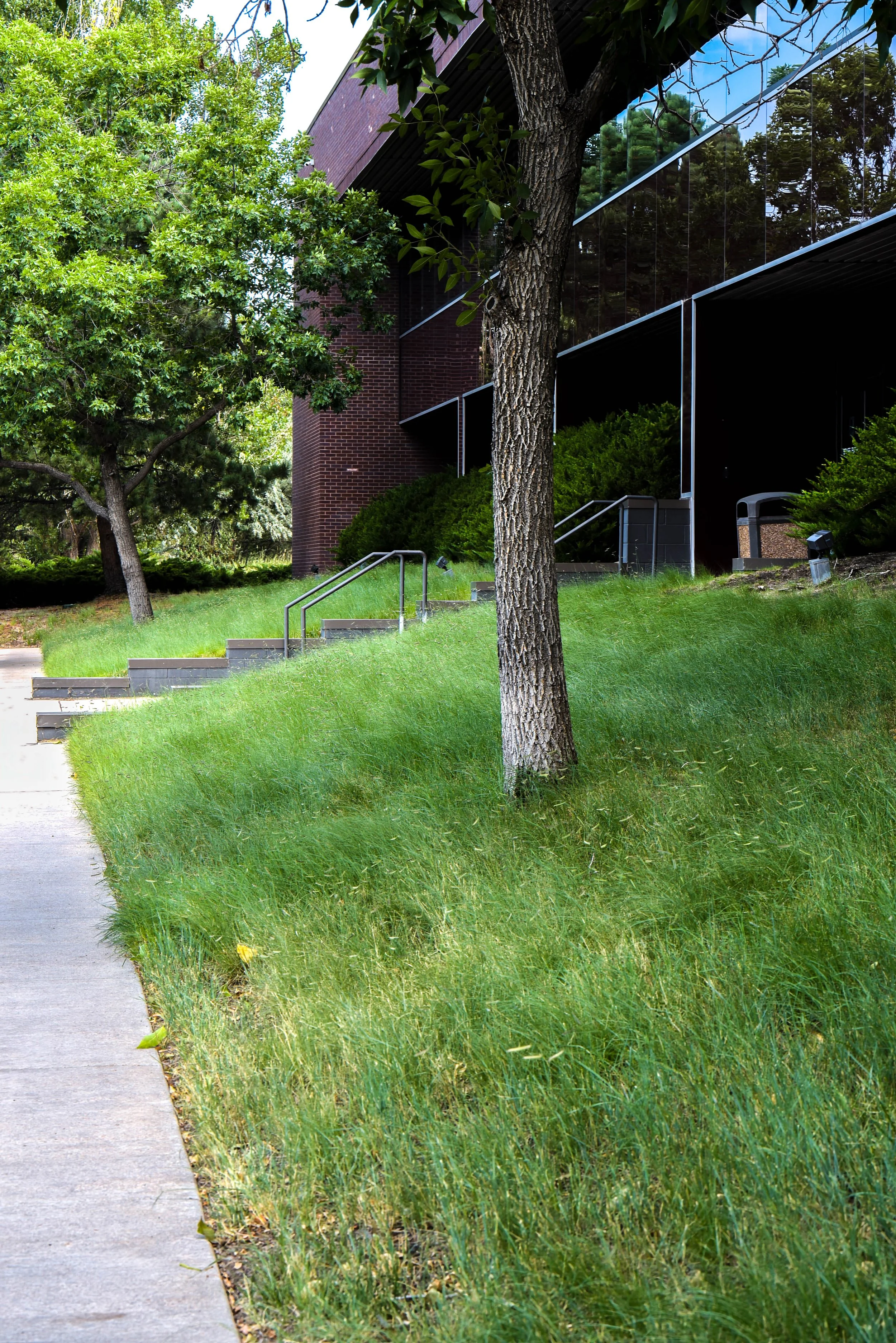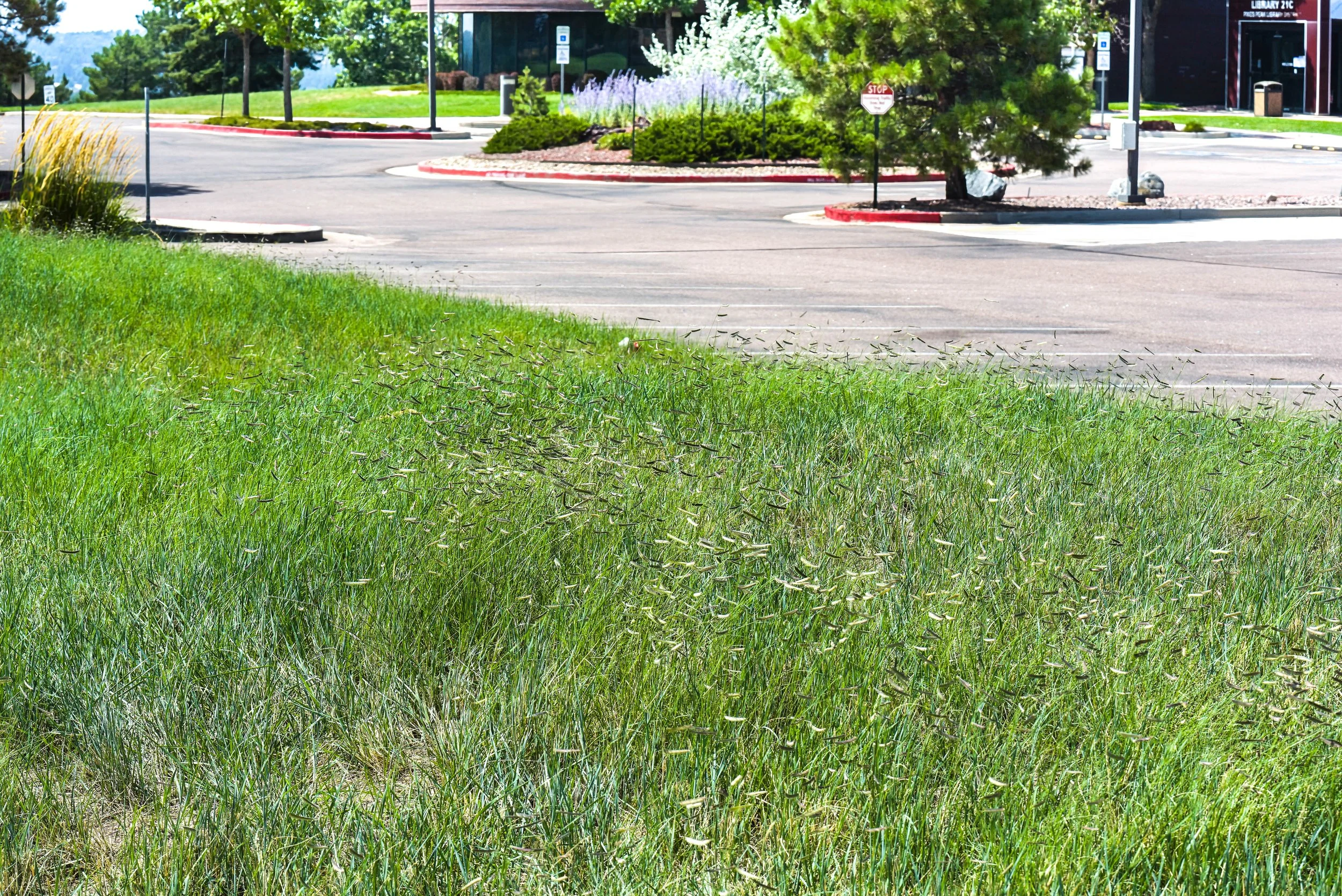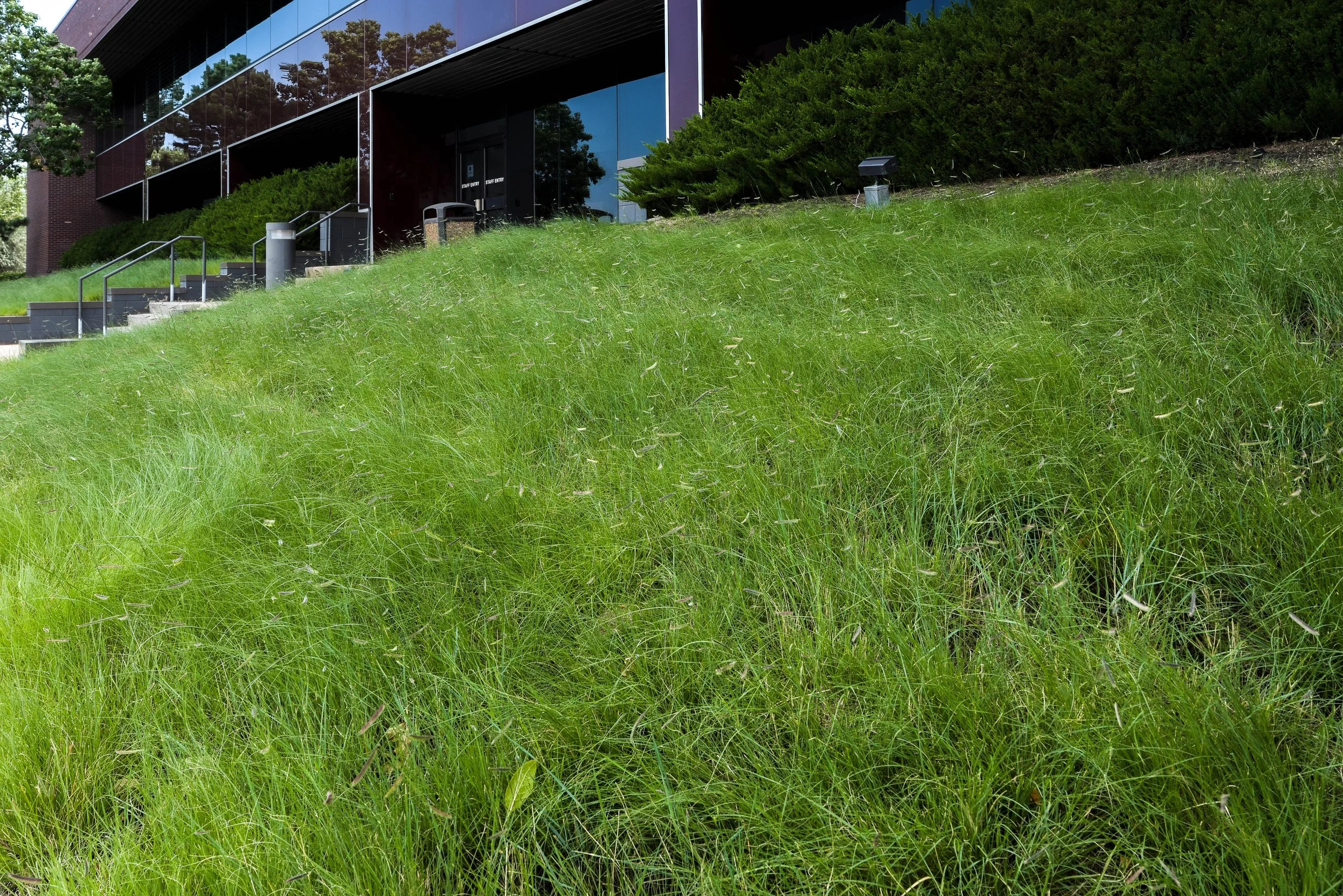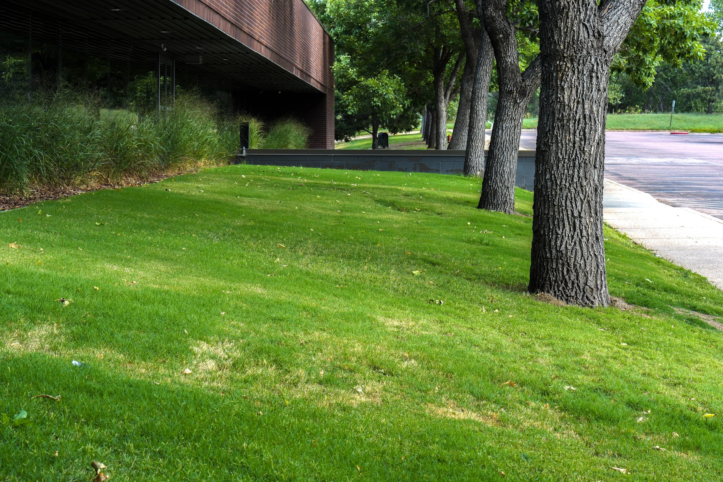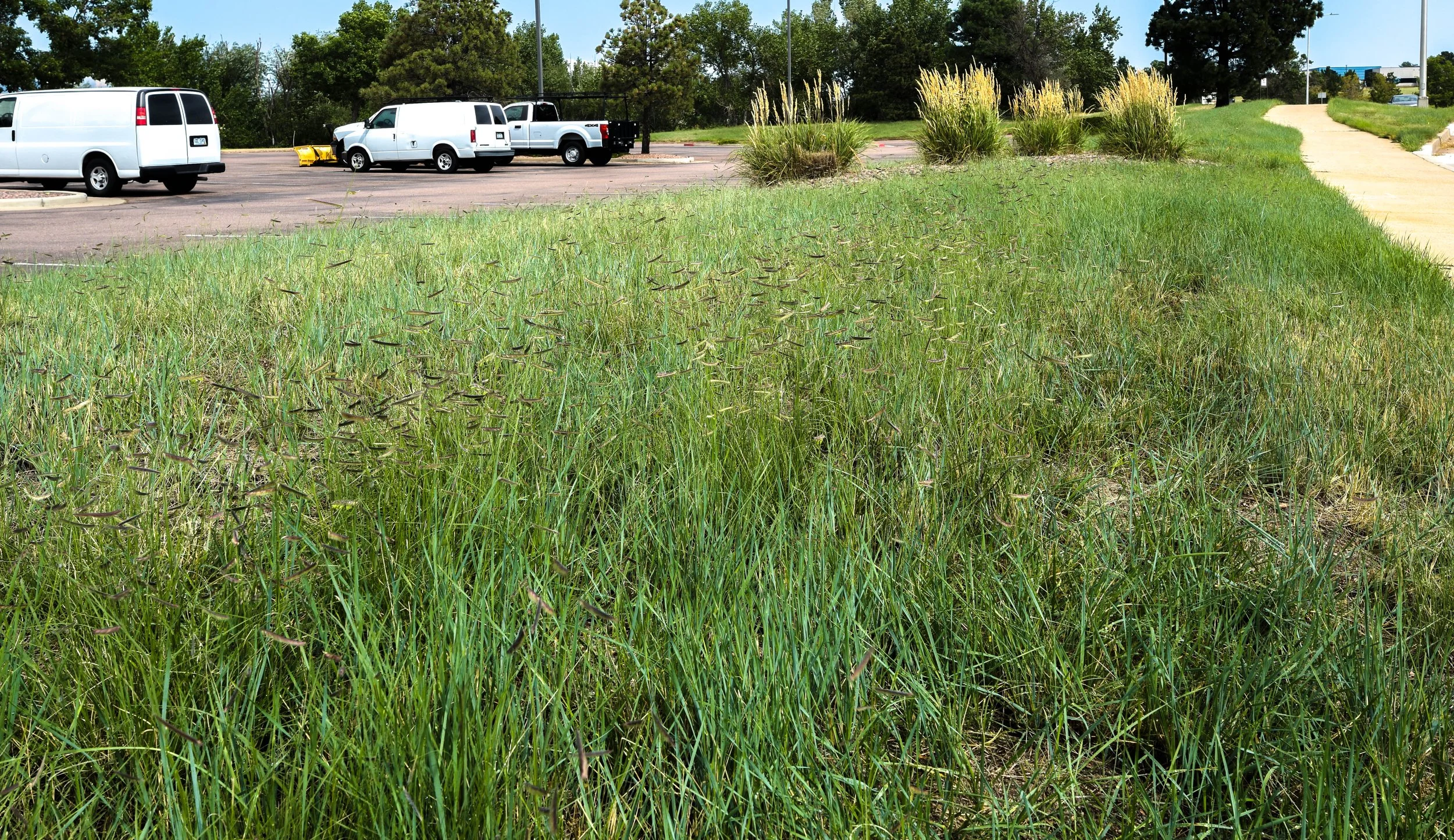 Converting over an acre of Kentucky Bluegrass to enhanced native grass mixes is not only attractive, but ecologically sustainable. Saving over 400,000 gallons per year (60%) of water on the grass alone, as well as reducing total maintenance costs by 25% is a win-win for all parties.